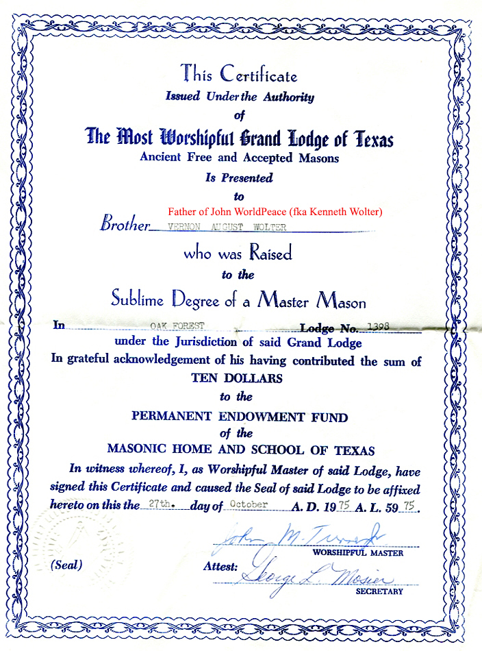 The Feds began to watch me when I changed my name in April 1988, but intensified due to the problems they were having with David Koresh and thinking I was going to start a similar cult. I have no organization, no followers, disciples, members, etc. and never have and never will. I have not to date solicited money or set up a non-profit vehicle. I am soliciting grant money to be paid to a university to support my Teach Peace curriculum.