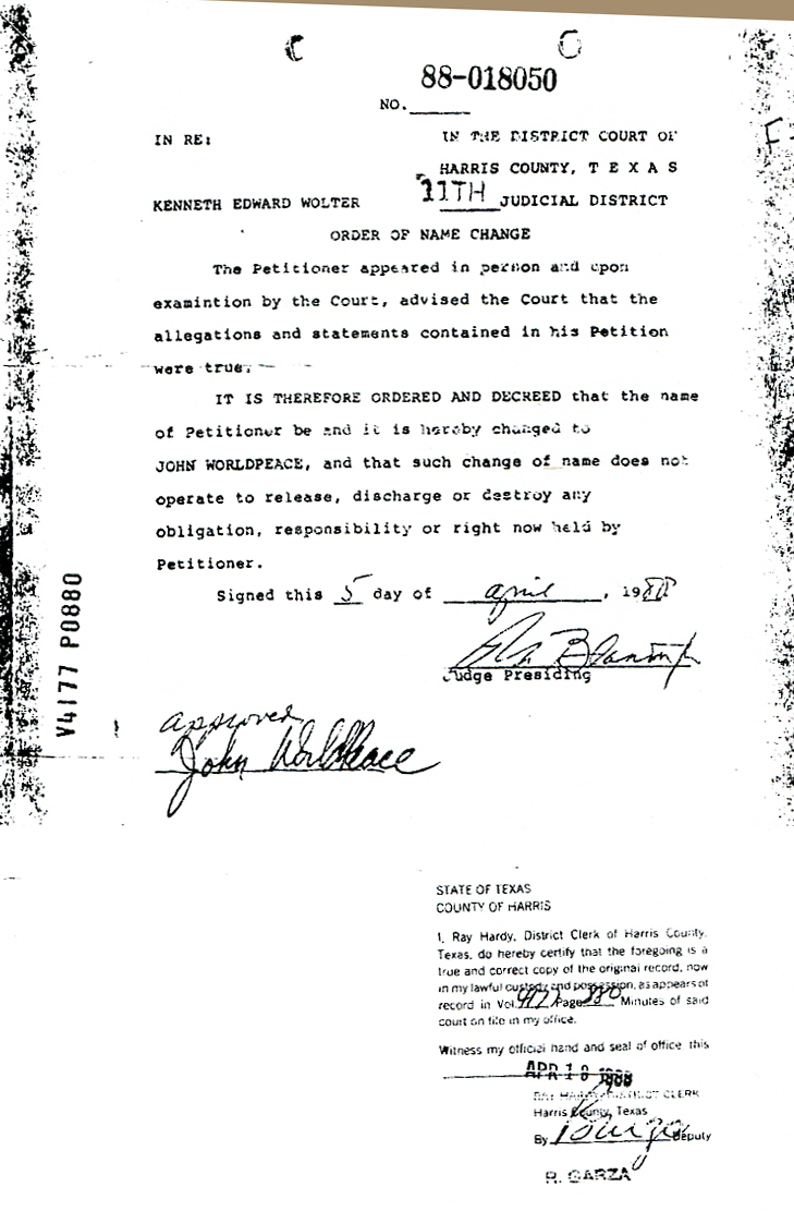 I have spent a lifetime in general and the last 30 years specifically, since I changed my name to John WorldPeace, committed to trying to determine how to increase the level of peace in the world human society.